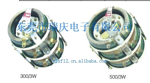 BC系列旋臂滑线式瓷盘变阻器适用于电压不超过500伏的工业电气设备中作电压、电流调节和交直流发电机电压调整及直流电动机转速调节之用。变阻器采用康铜线或镍铬线作为电阻材料绕于圆形陶瓷器骨架上,电阻材料除滑动接触表面外均涂以耐高温珐琅涂料并粘合于陶瓷器底盘上,中心配以转轴带动刷握和电刷的滑动从而获得变化的电阻值。变阻器分开启式及保护式二种,其保护式即变阻器加金属防护箱壳,并配以调节手轮。